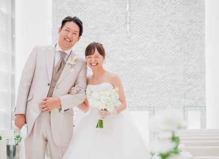 笑顔が素敵なおふたりで、ご結婚式当日はご家族の方やご友人の方に囲まれて